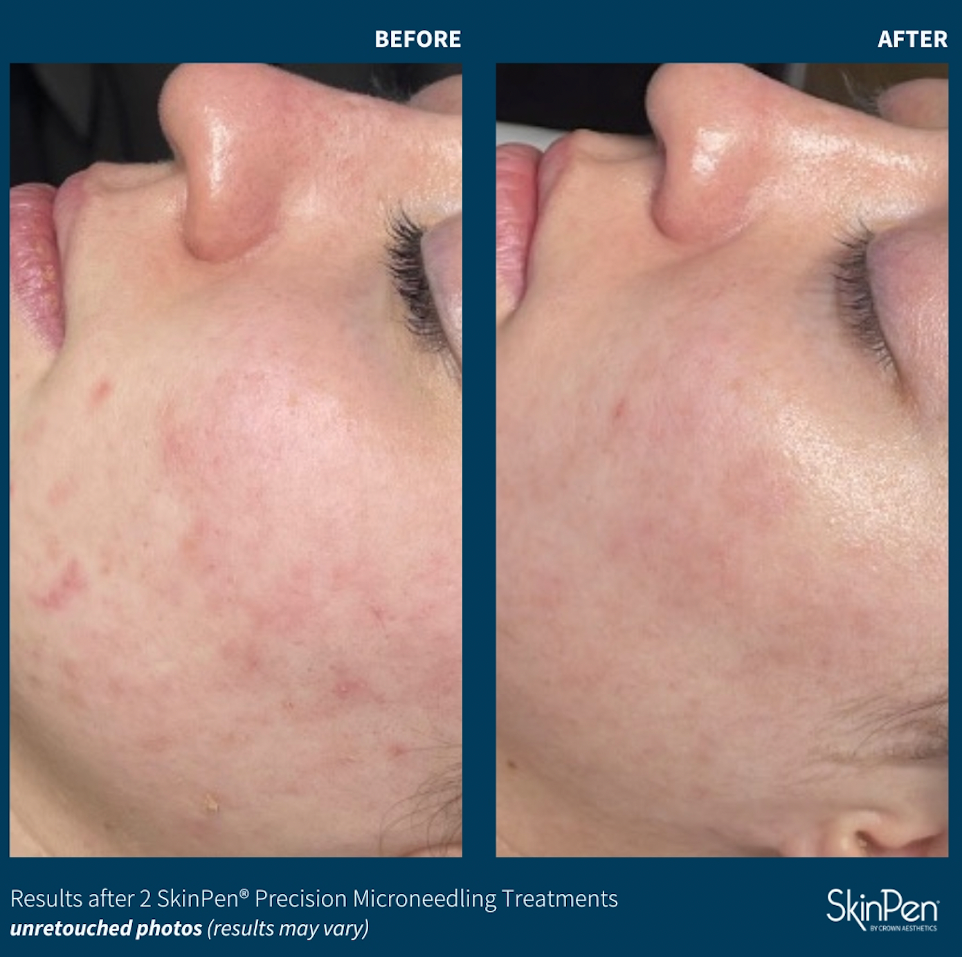- Skin Pen Microneedling to stimulate the skin’s natural repair process—no chemicals, heat, or thermal energy required.